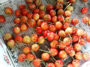 今日はお客さんのうちでさくらんぼいただきました。 正直もらいすぎで、食べ切れません。 ひそかに家の庭でも一本栽培しています! おいしいのができるかな? 家のも楽しみ。